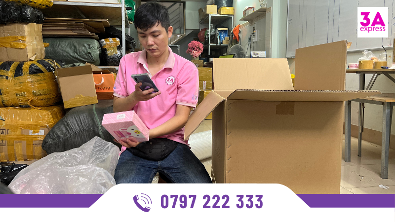 Nhân viên của 3A Express tiến hành đóng gói hàng hoá và làm thủ tục hải quan.